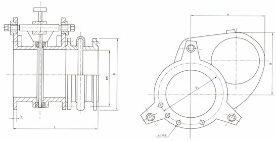 F43BX型手动扇形盲板阀为长结构系列,阀体上设有伸缩器,可以补偿阀门启闭过程中产生的阀体轴向位移。该系列盲板阀橡胶密封圈分别安装在左、右阀体上。